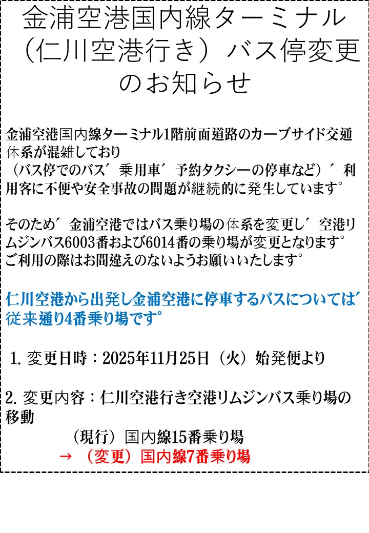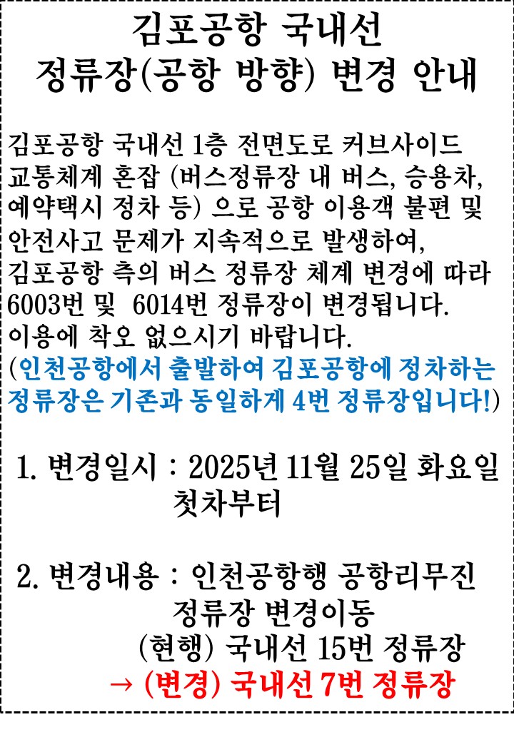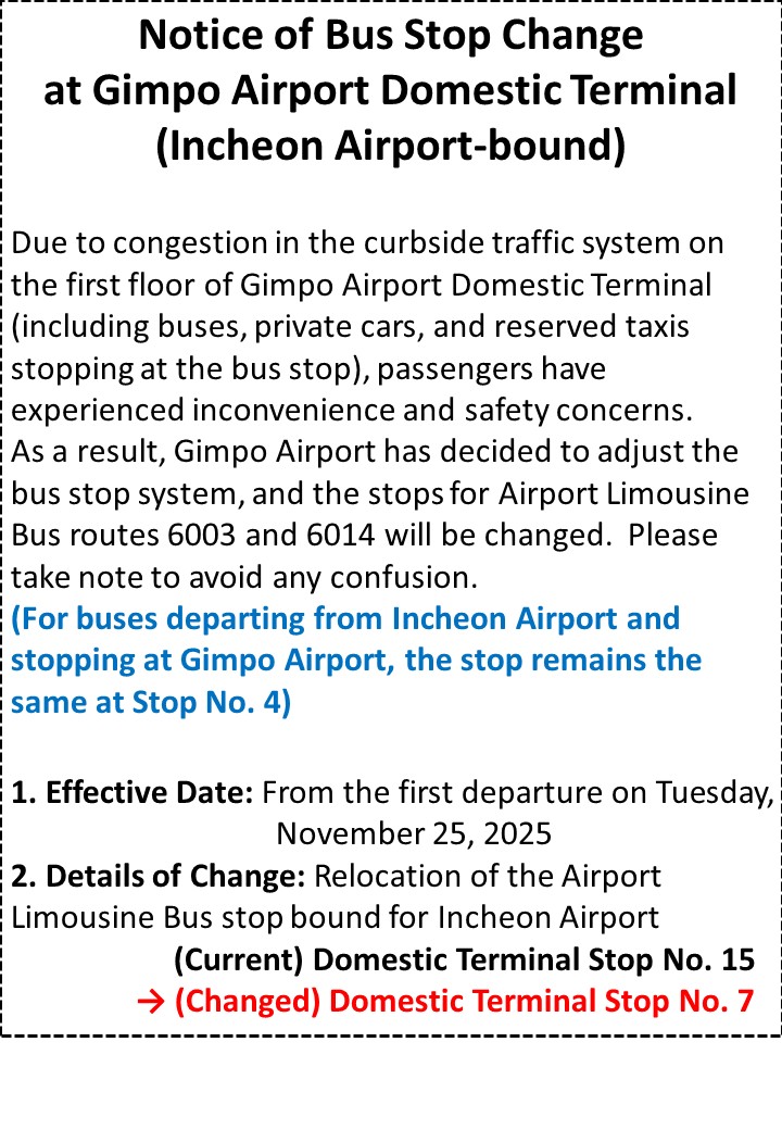 ★★ 김포공항 국내선 정류장(공항방향) 변경 안내(Notice of Bus Stop Change at Gimpo Airport)