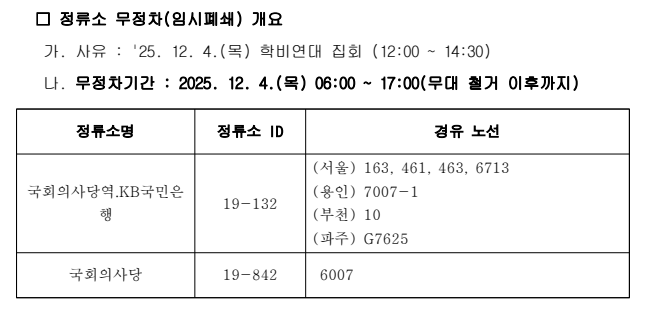 12월 5일 18시 무대 철거 전까지, 국회의사당 정류장은 무정차 합니다.