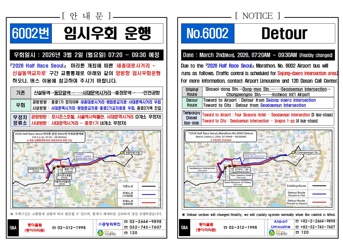 ★(Detour Notice) 2026년 03월 02일(월), 마라톤 행사로 인한 공항버스 우회 안내
