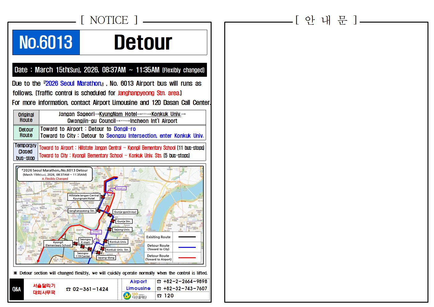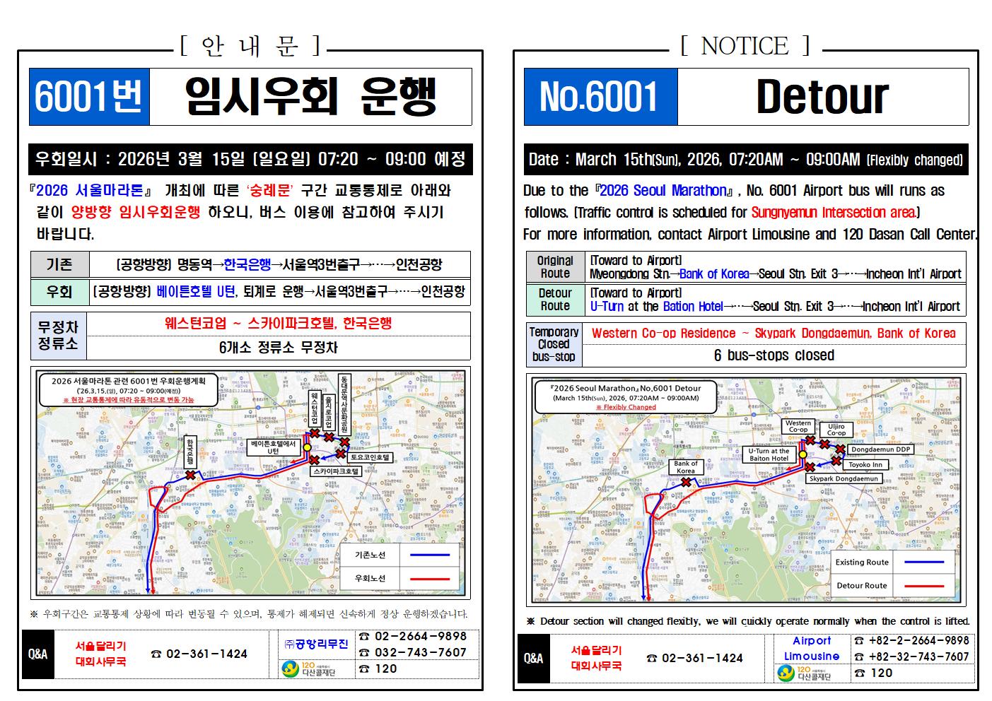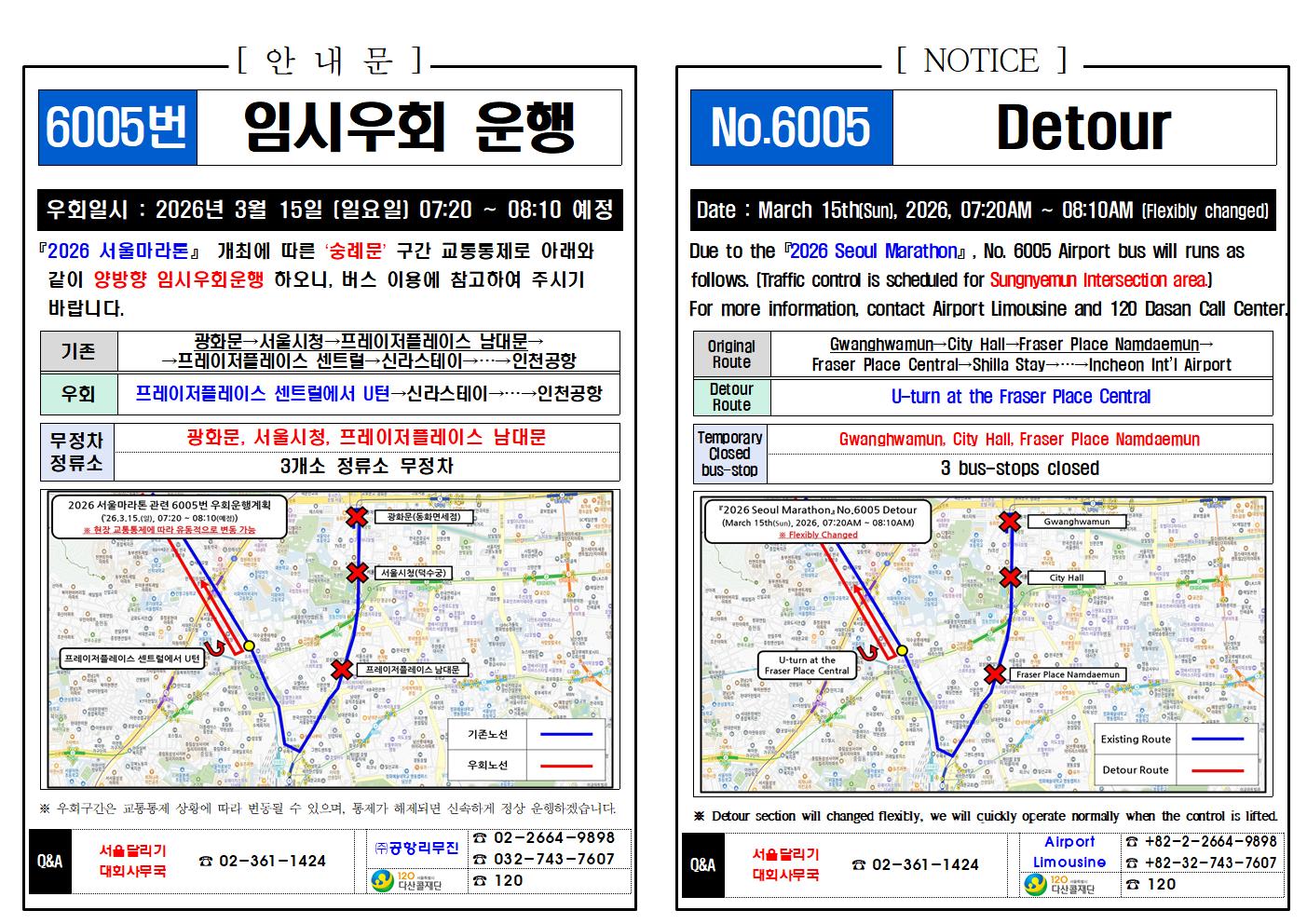 ★(Detour Notice) 2026년 03월 15일(일), 공항버스 우회 안내 (마라톤, Marathon)