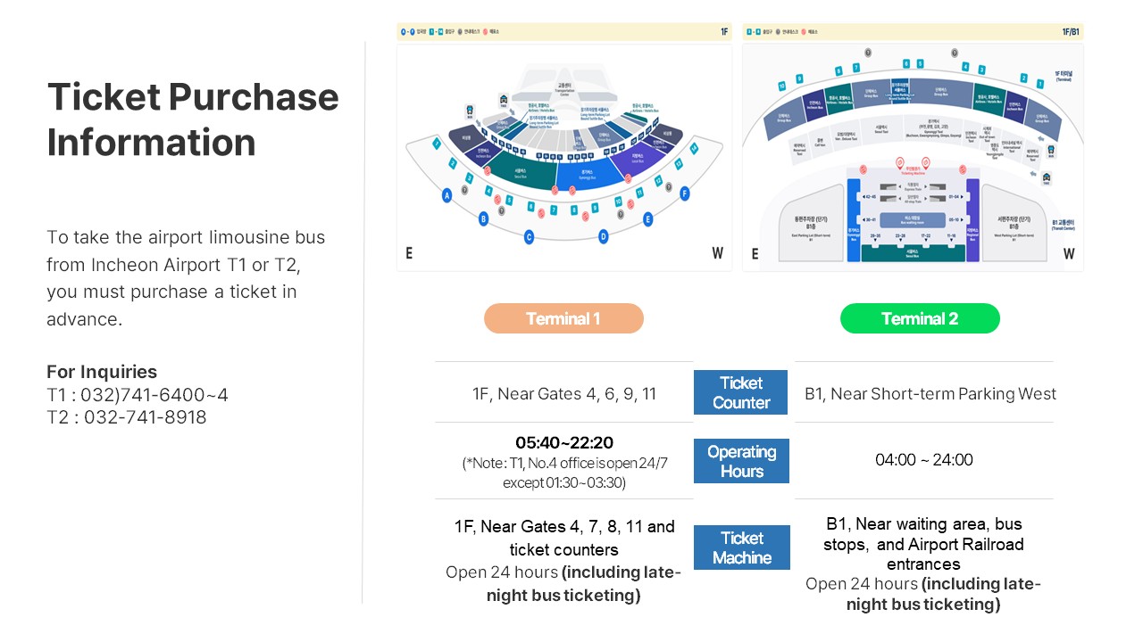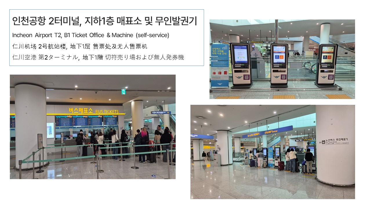 Passengers boarding Airport Limousine buses to downtown Seoul at Incheon Airport Terminal 2 must purchase a ticket in advance.