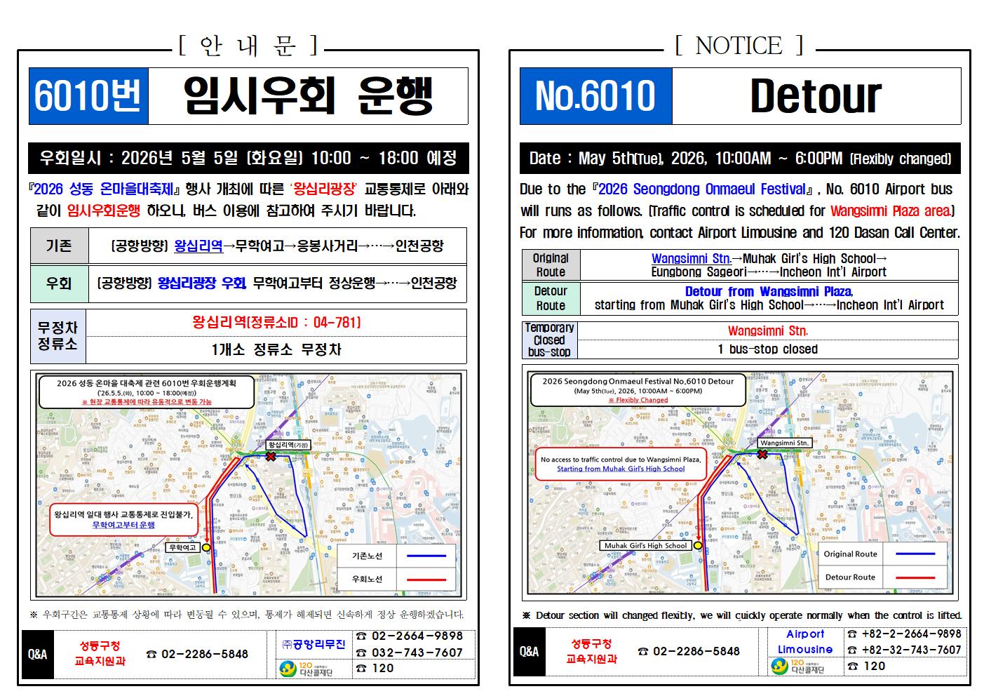 ★공항버스 우회 안내, 2026년 04월 26일(일, Sun) (Detour Notice : 2026 서울 하프마...