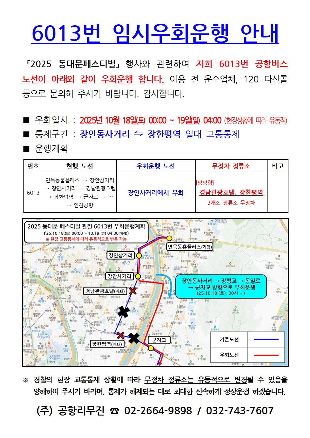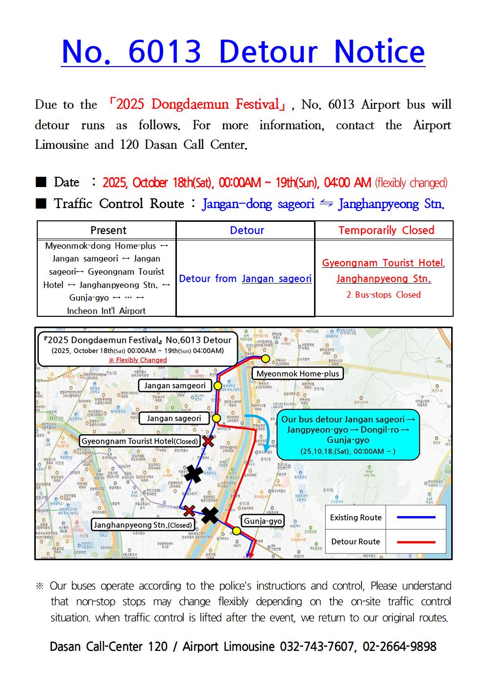 2025년 10월 18일~19일 임시우회운행 안내 (2025.Oct.18~19 Detour Notice)