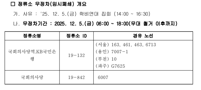 12월 5일 18시 무대 철거 전까지, 국회의사당 정류장은 무정차 합니다.