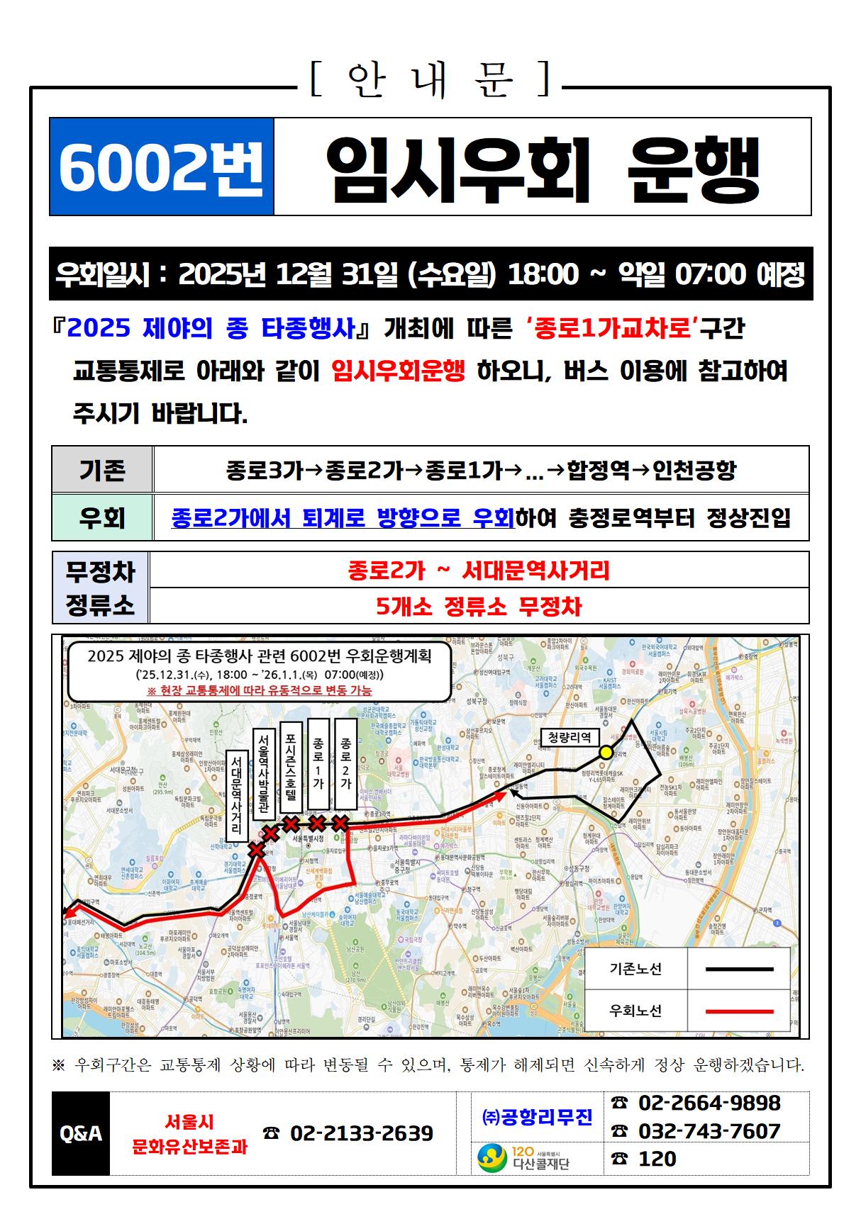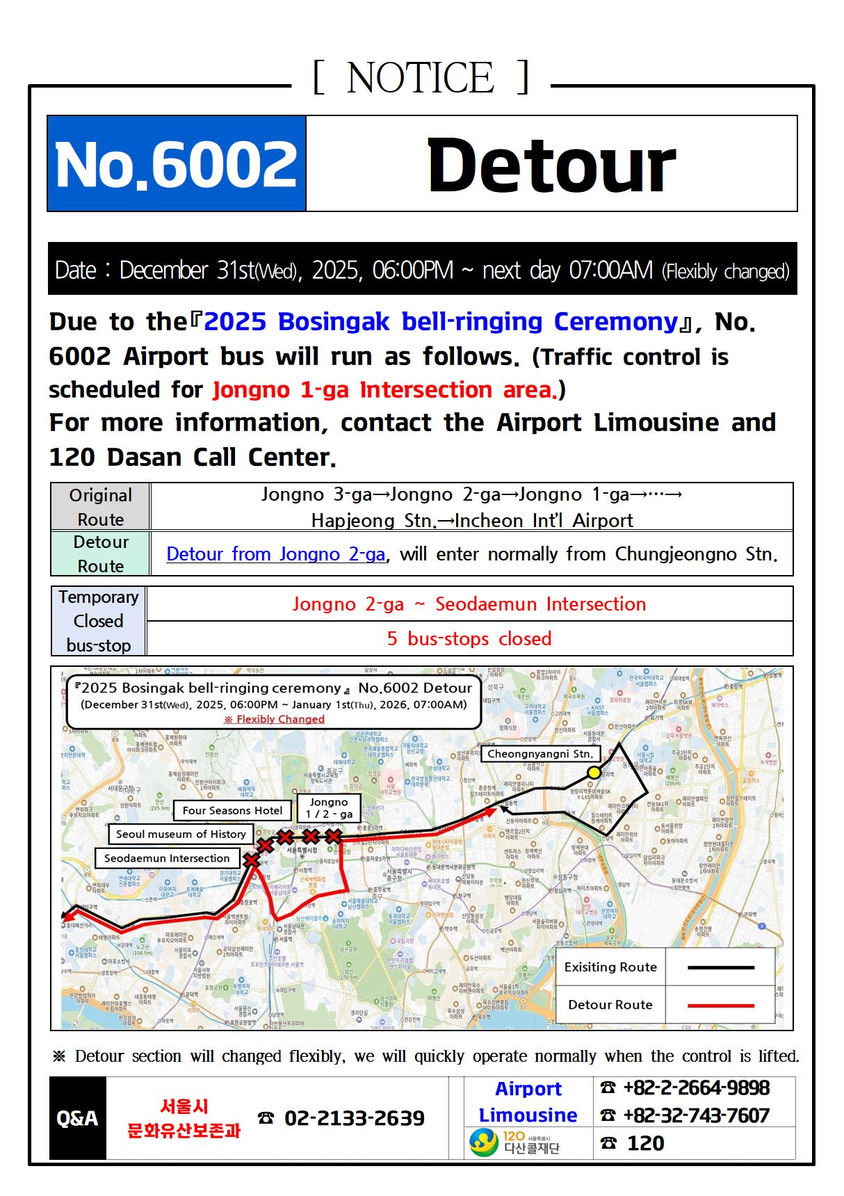 ★(Detour Notice) 2025년 12월 31일(수), 공항버스 우회 안내 (제야의 종 행사, Bell-ringing Ceremony)