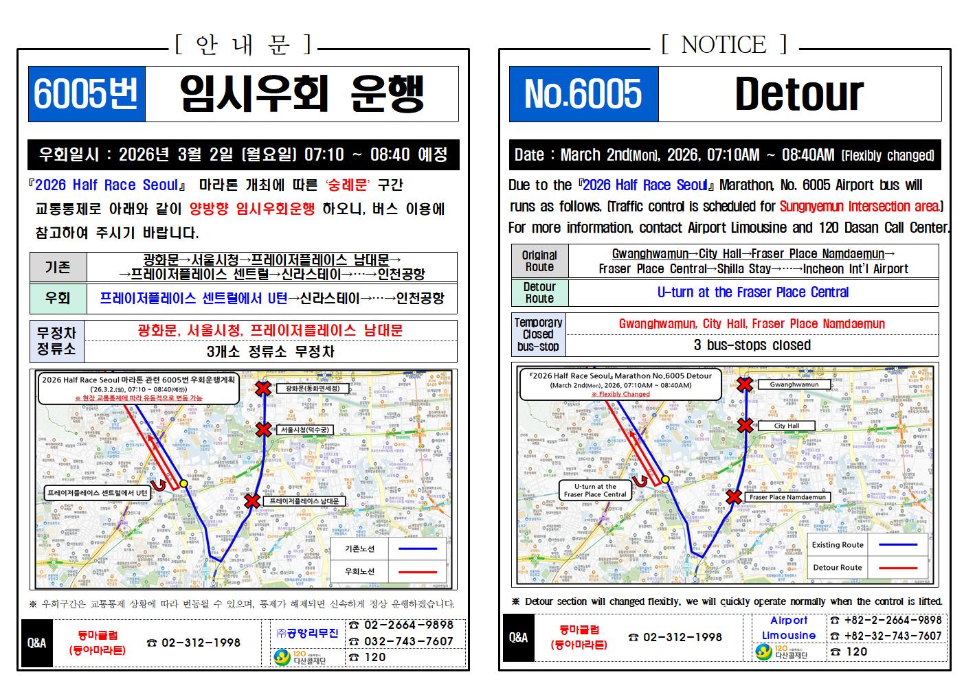 ★(Detour Notice) 2026년 03월 02일(월), 마라톤 행사로 인한 공항버스 우회 안내