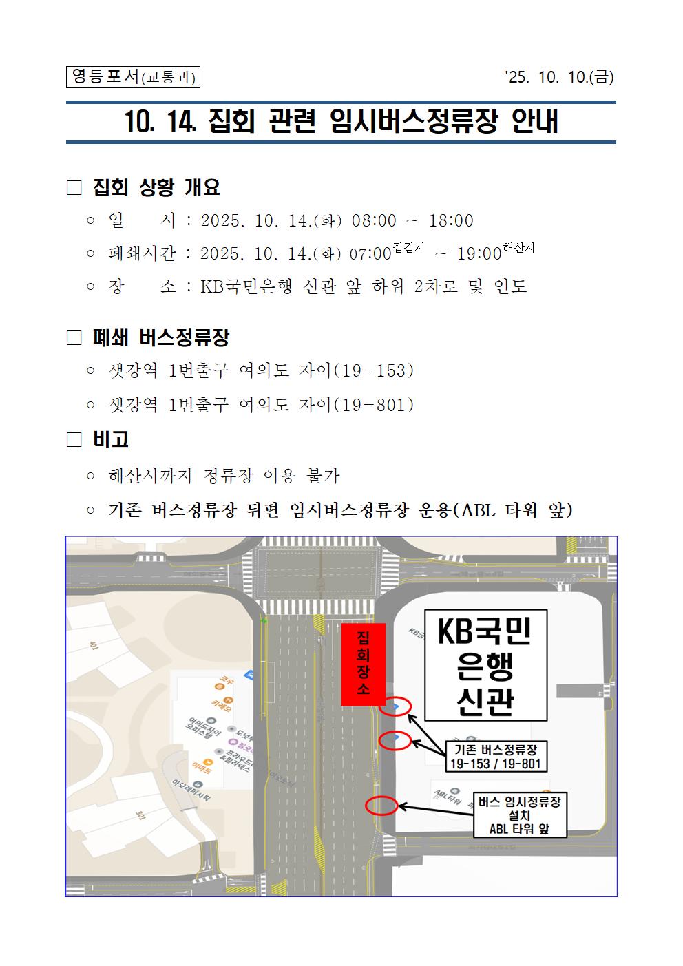 - Location : Lower 2nd lane and sidewalk in front of KB Kookmin Bank New Building